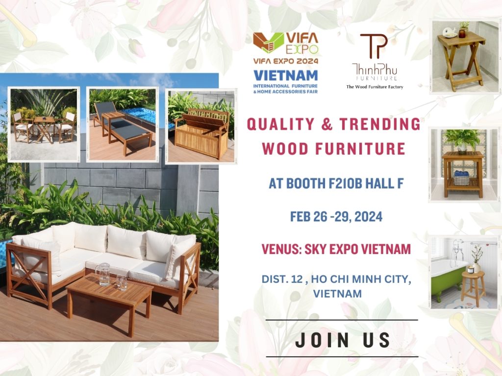 Join us at VIFA 2024, taking place from February 26 to 29, 2024, at Booth F210B, Hall F in SKY EXPO VIETNAM, District 12, Hochiminh City. We warmly invite you to experience the artistry and craftsmanship of our garden furniture firsthand.